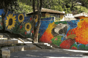 Miles de tapas de plástico, que podrían haber terminado en la basura, se transformaron en un colorido mural en Caracas, Venezuela....